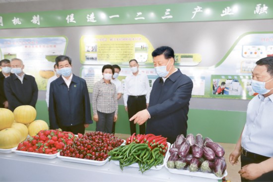 2020年6月8日至10日,中共中央總書記、國家主席、中央軍委主席總書記在寧夏考察。這是6月9日下午,總書記在銀川市賀蘭縣稻漁空間鄉(xiāng)村生態(tài)觀光園,了解寧夏現(xiàn)代農(nóng)業(yè)發(fā)展和特色農(nóng)產(chǎn)品情況。 新華社記者 鞠鵬/攝
